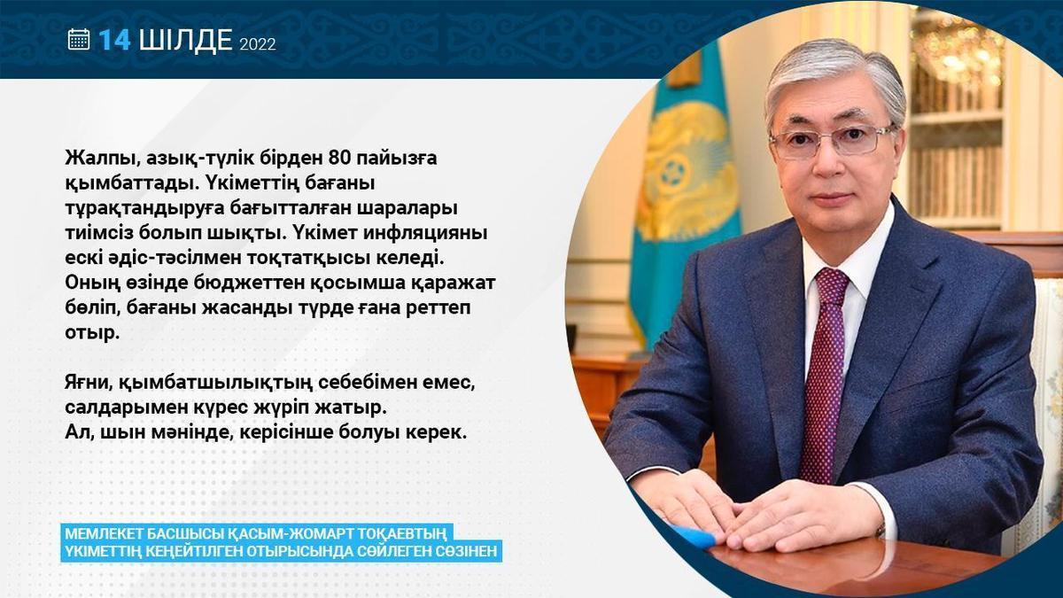 15 июль 2022 0 1 2 3 4 5 Мемлекет басшысы Қасым-Жомарт Тоқаевтың үкіметтің кеңейтілген отырысында сөйлеген сөзі