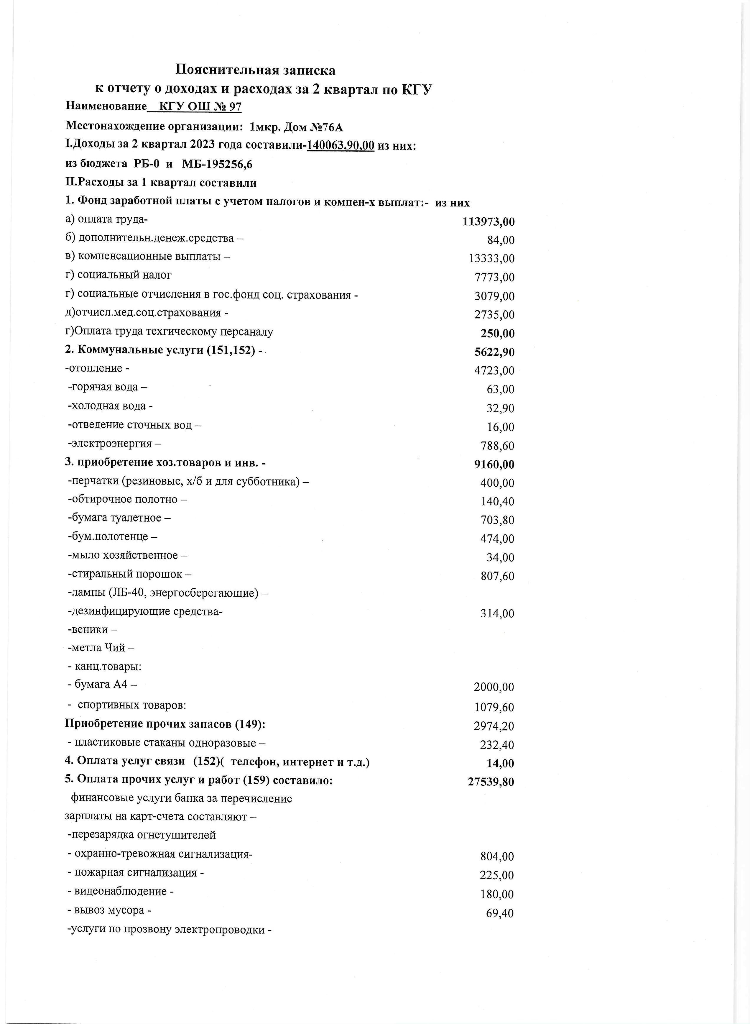 » Отчет о доходах и расходах за 2 квартал 2023 года