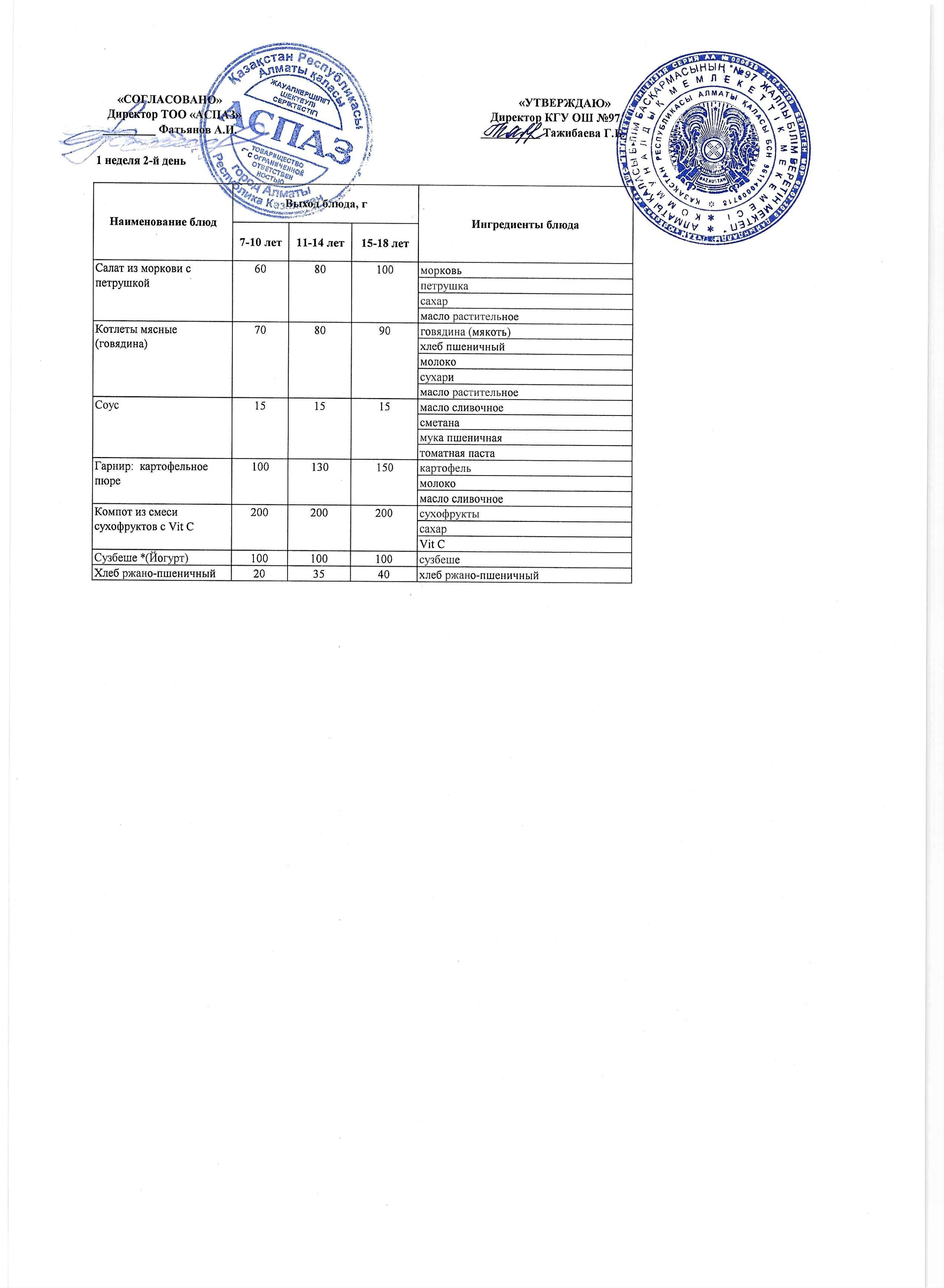Меню 1 недели 2-й день