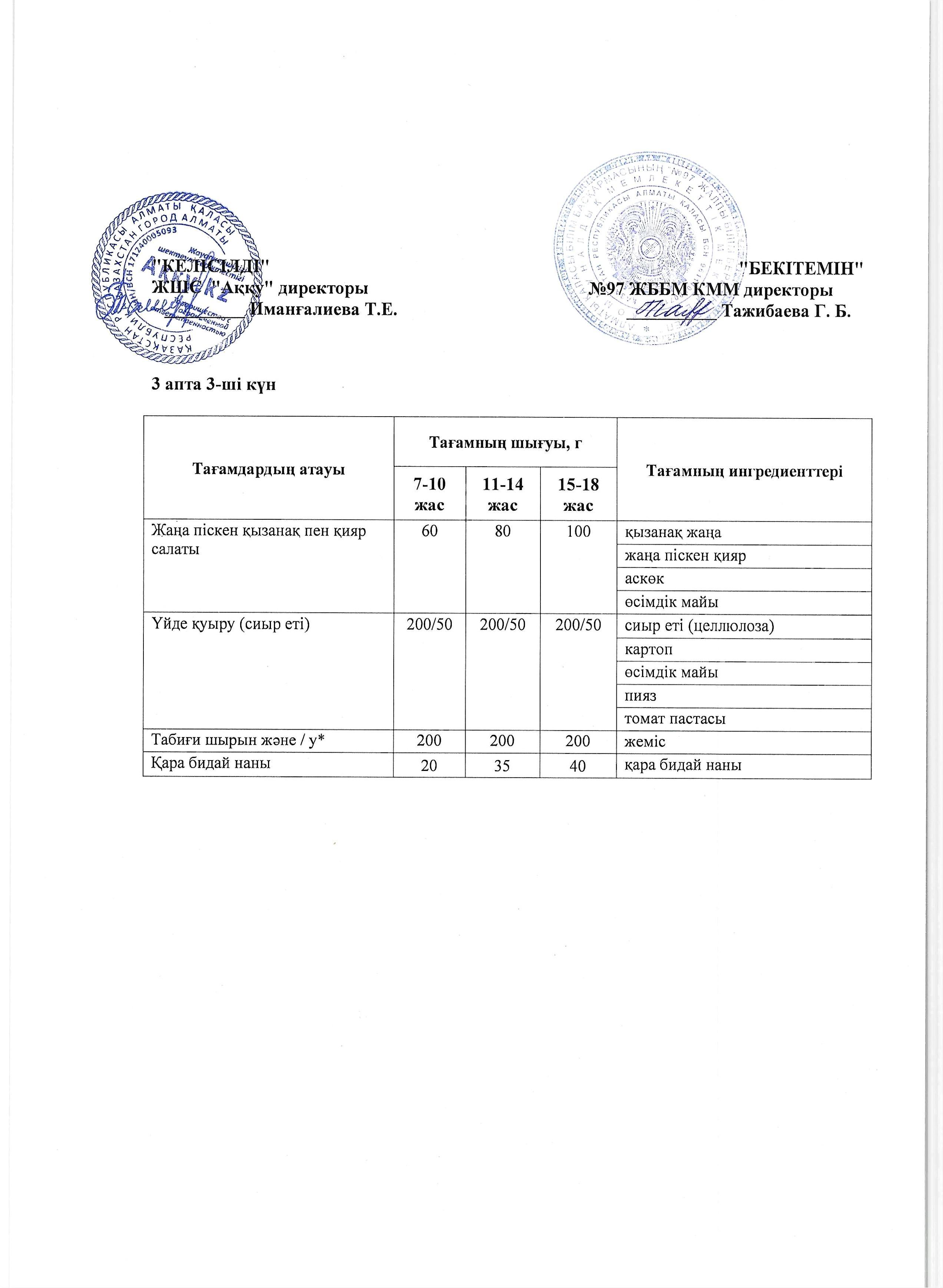 » 3 апта сәрсенбі күнінің ас мәзірі