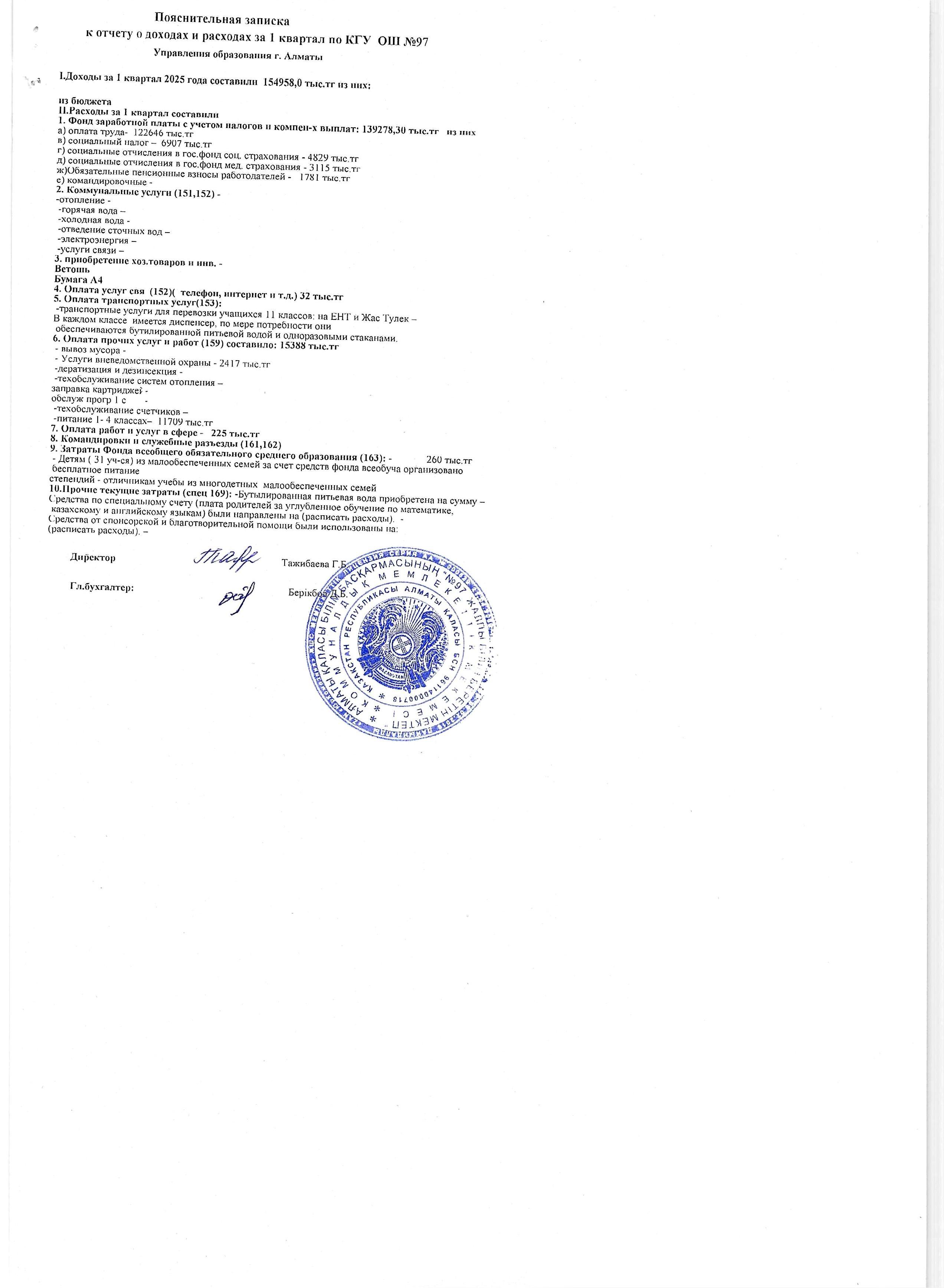» Отчет о доходах и расходах за 1 квартал 2025 года