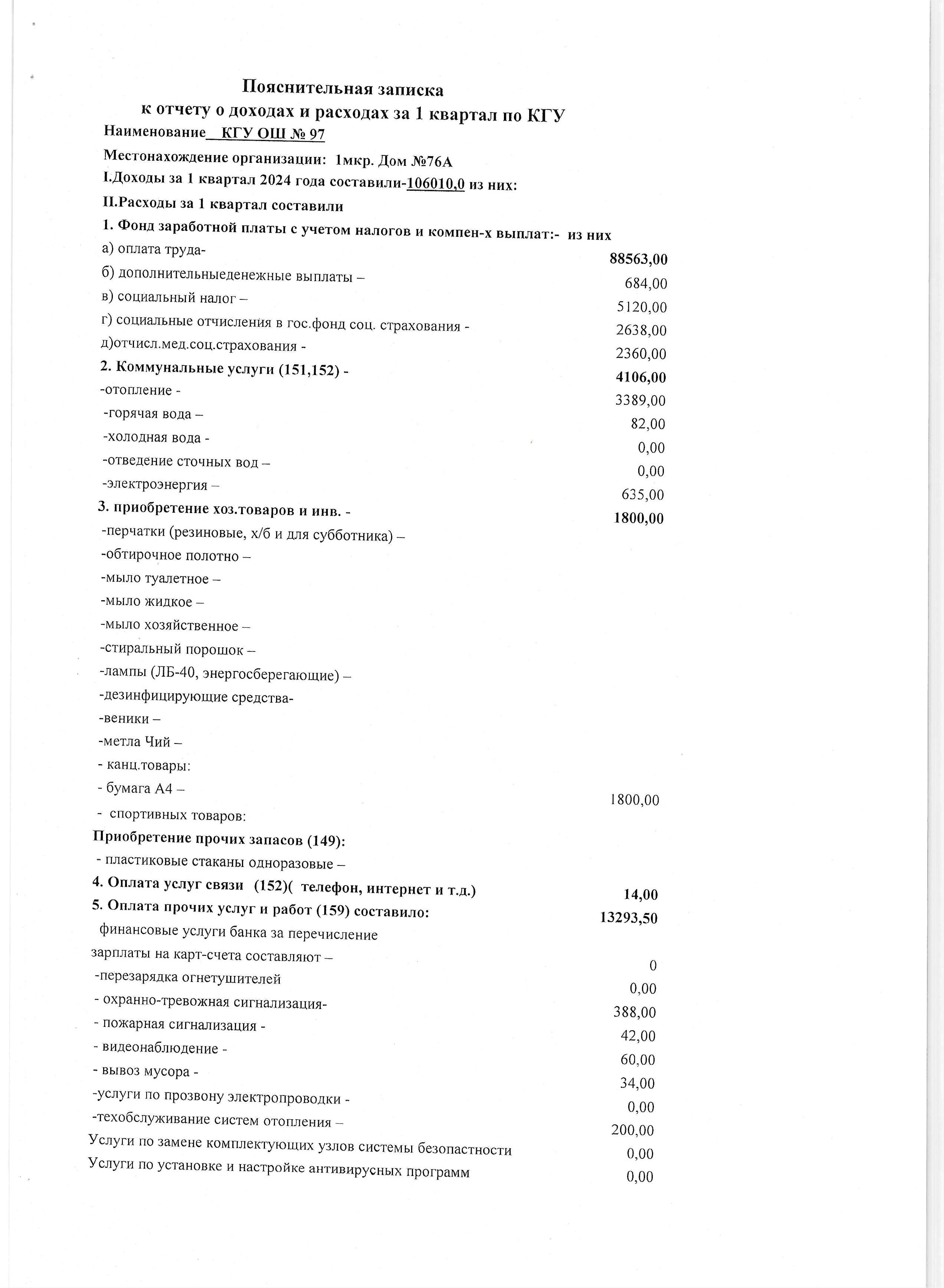» Отчет о доходах и расходах за 1 квартал 2024 года
