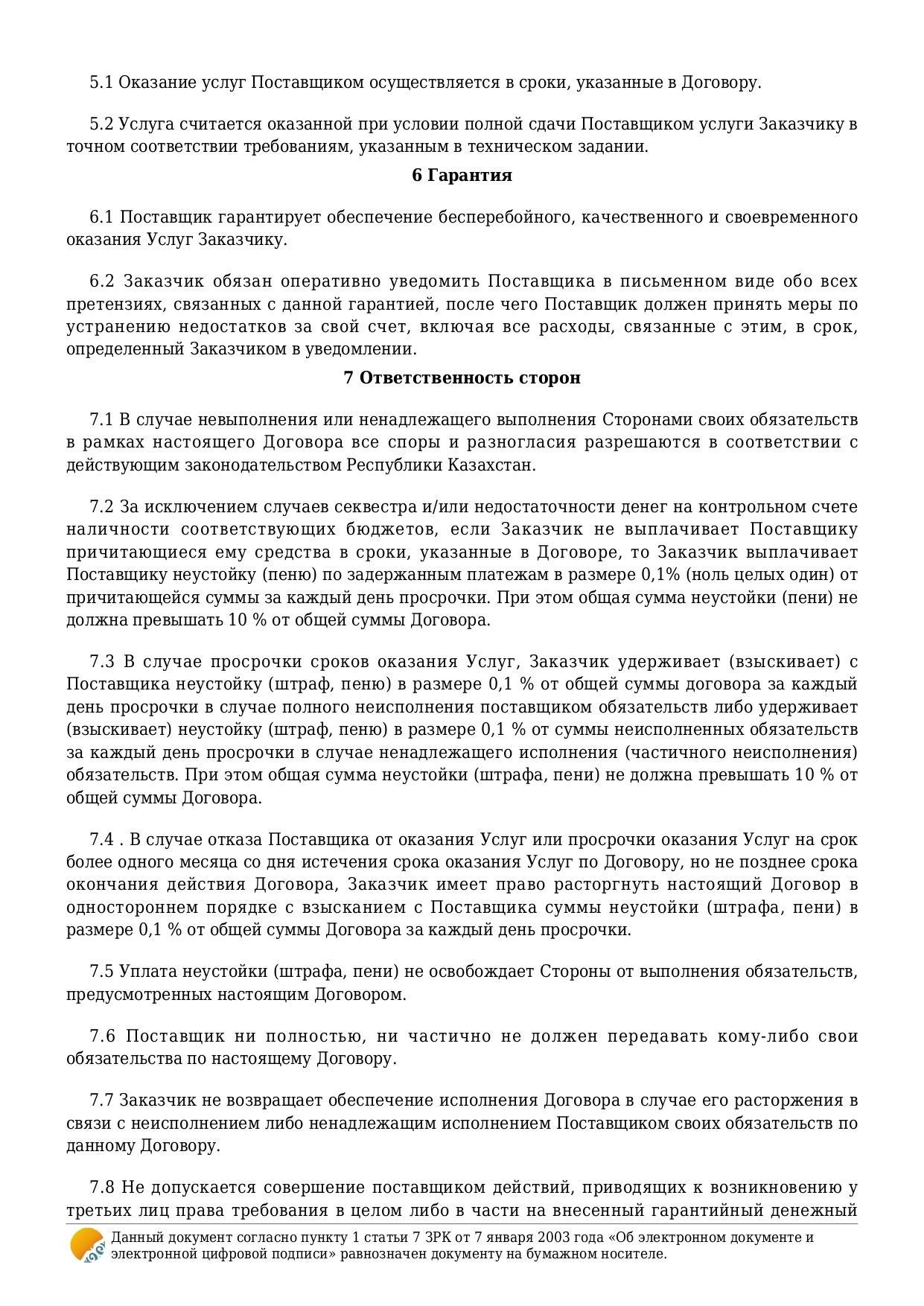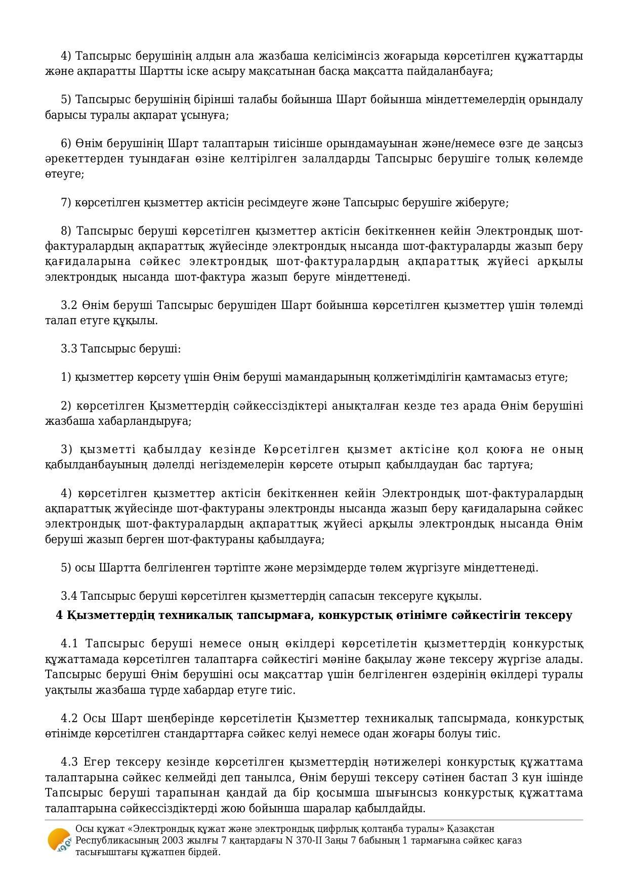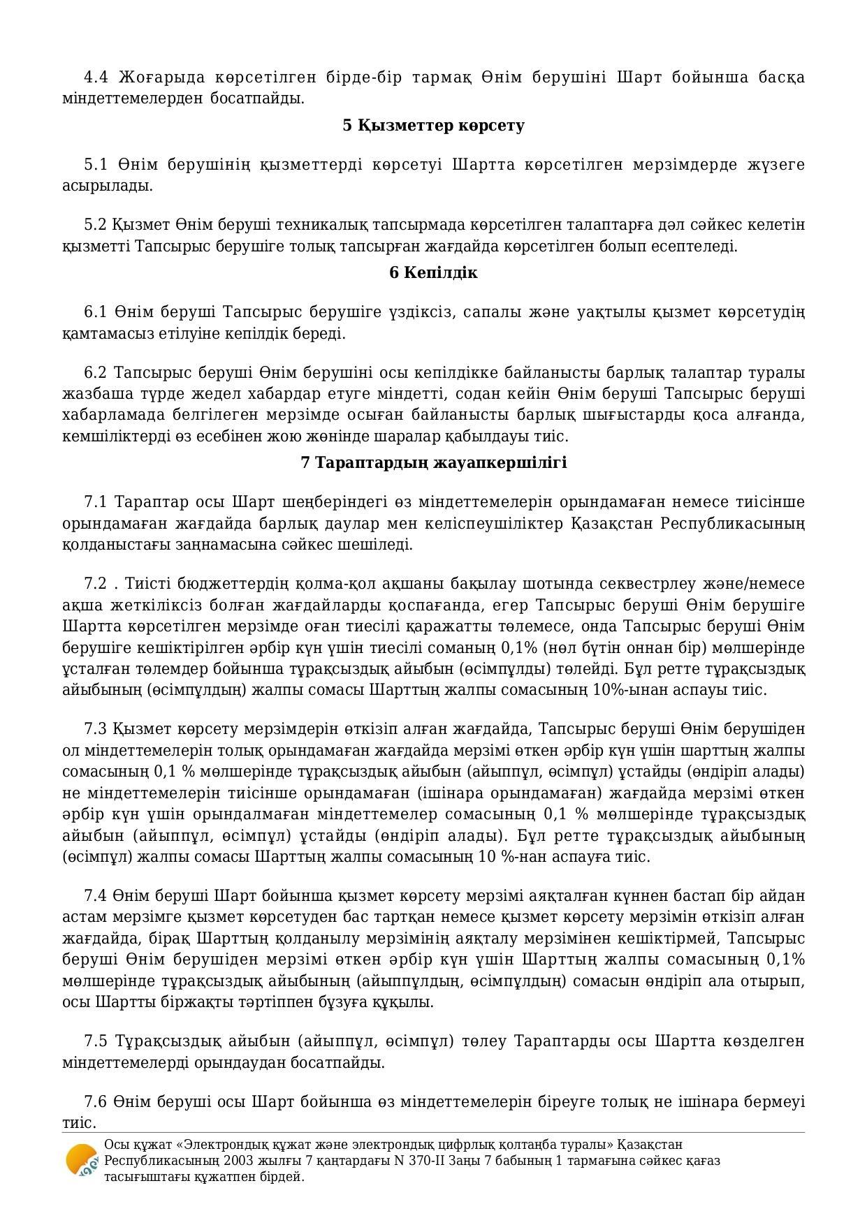 Договор об оказании услуги / Қызмет көрсету туралы шарт