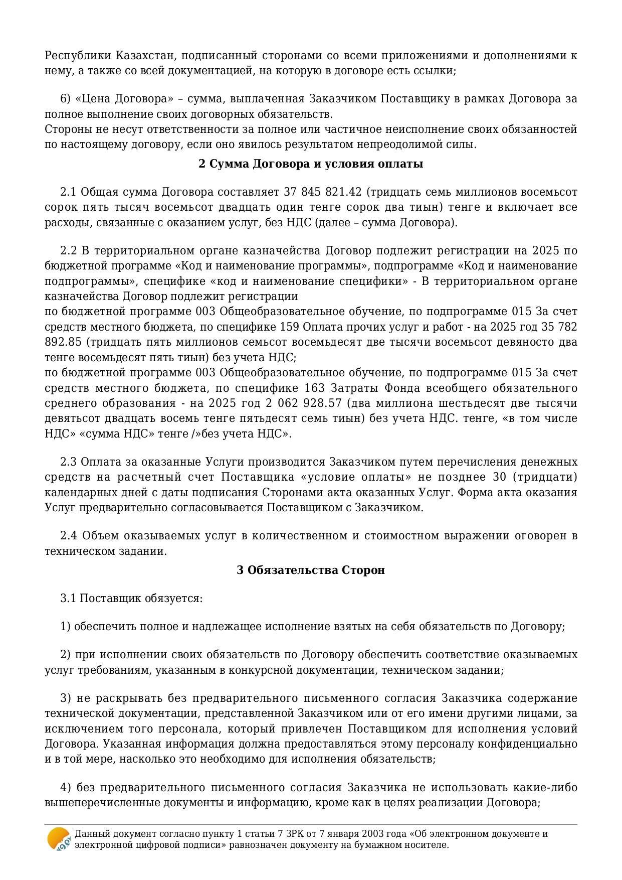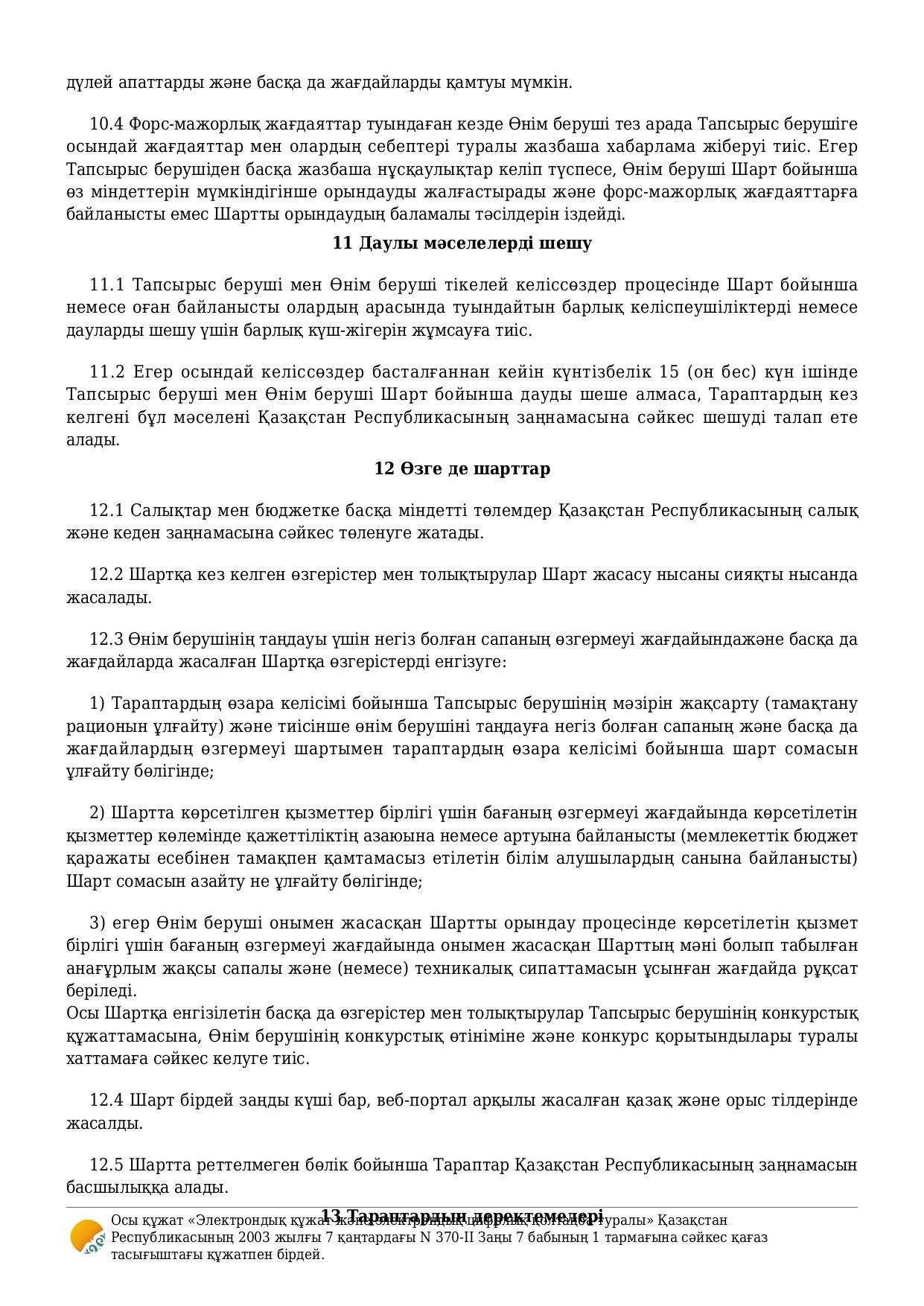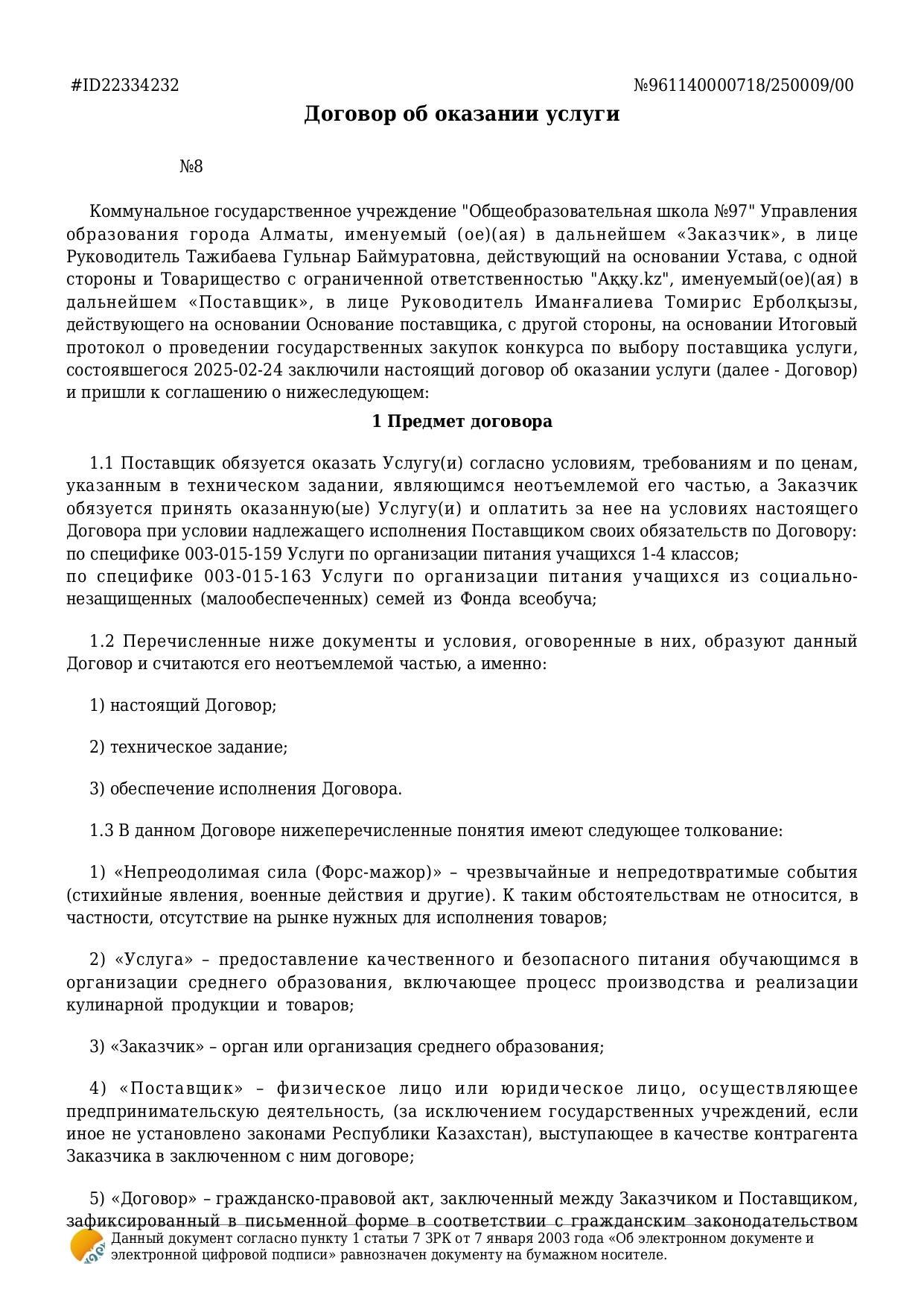 Договор об оказании услуги / Қызмет көрсету туралы шарт