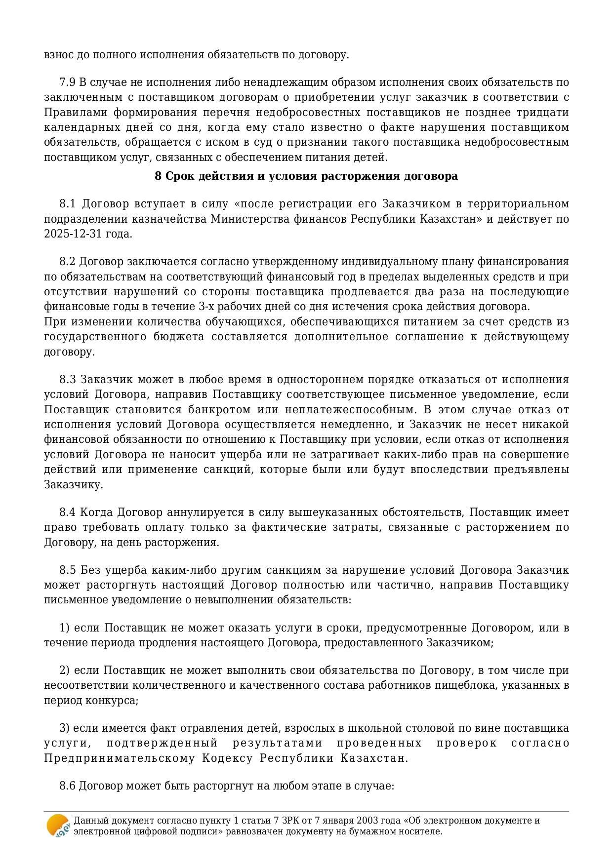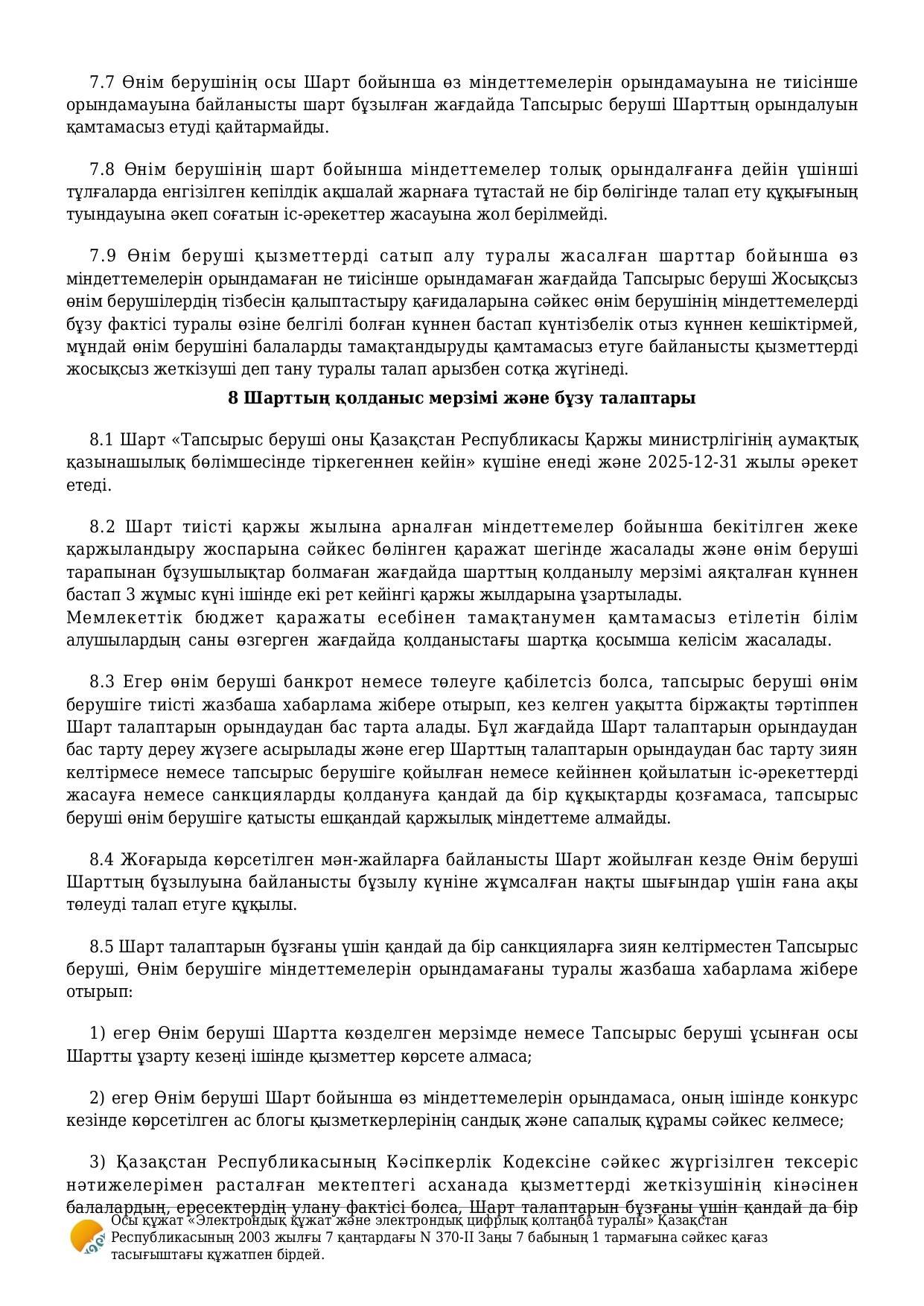 » Қызмет көрсету туралы шарт №8/Договор об оказании услуги №8