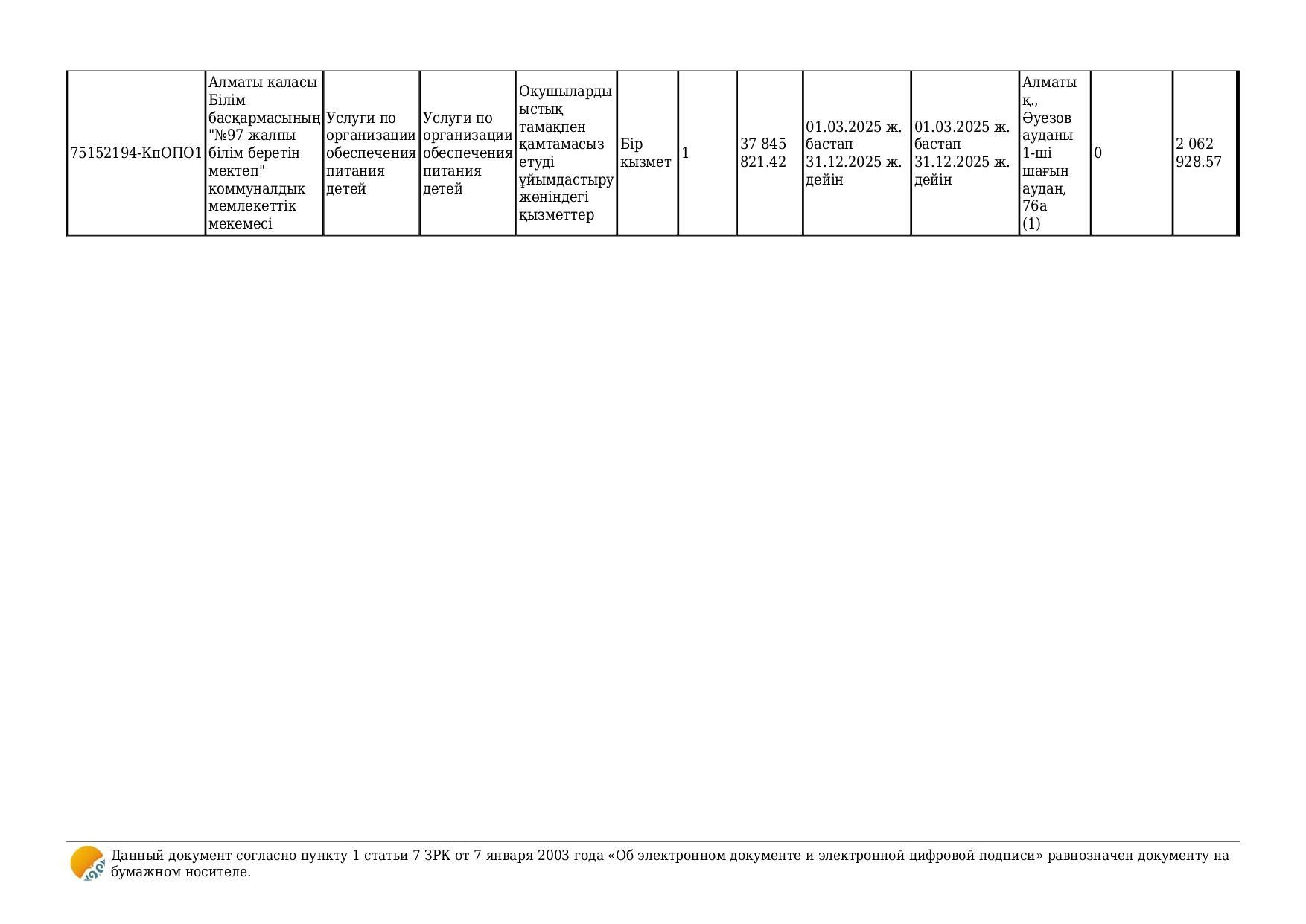 Қызмет көрсету туралы шарт №32 11.11.2024 жыл/Договор об оказании услуги №32 от 11.11.2024 года