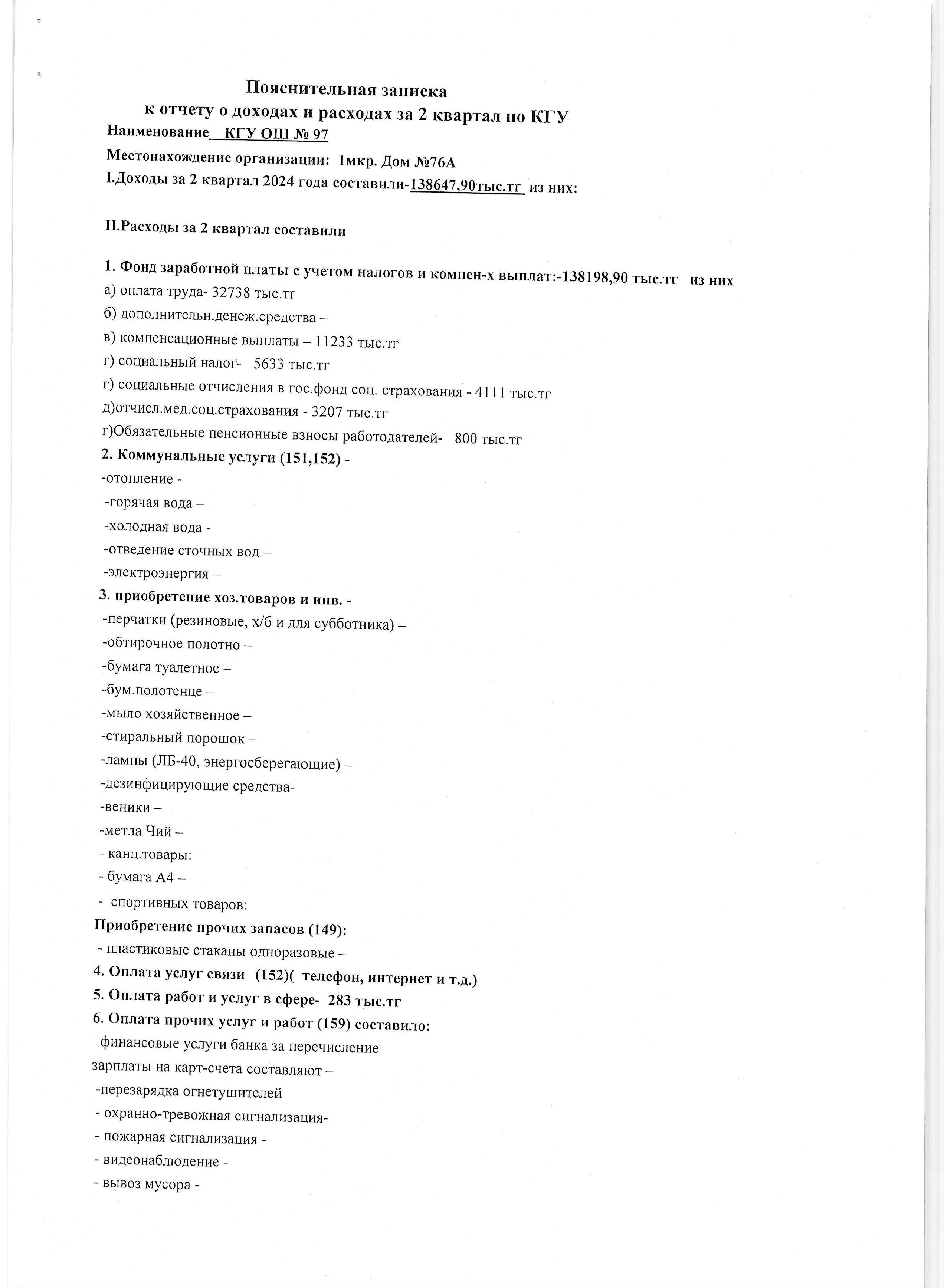 » Отчет о доходах и расходах за 2 квартал 2024 года