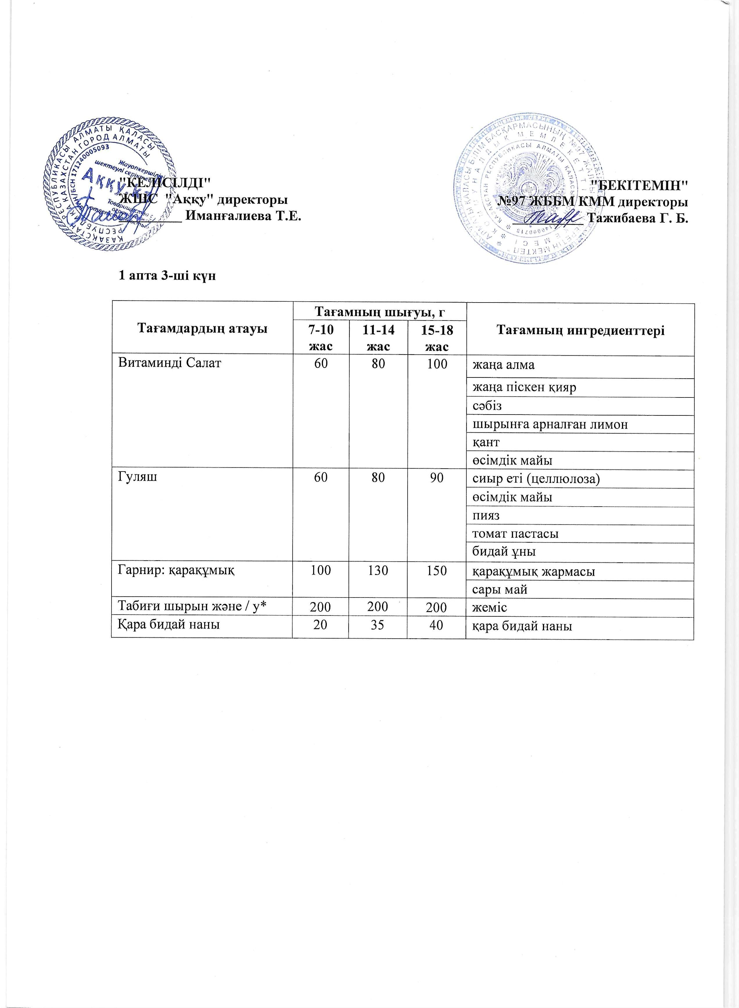 » 1 апта сәрсенбі күнінің ас мәзірі