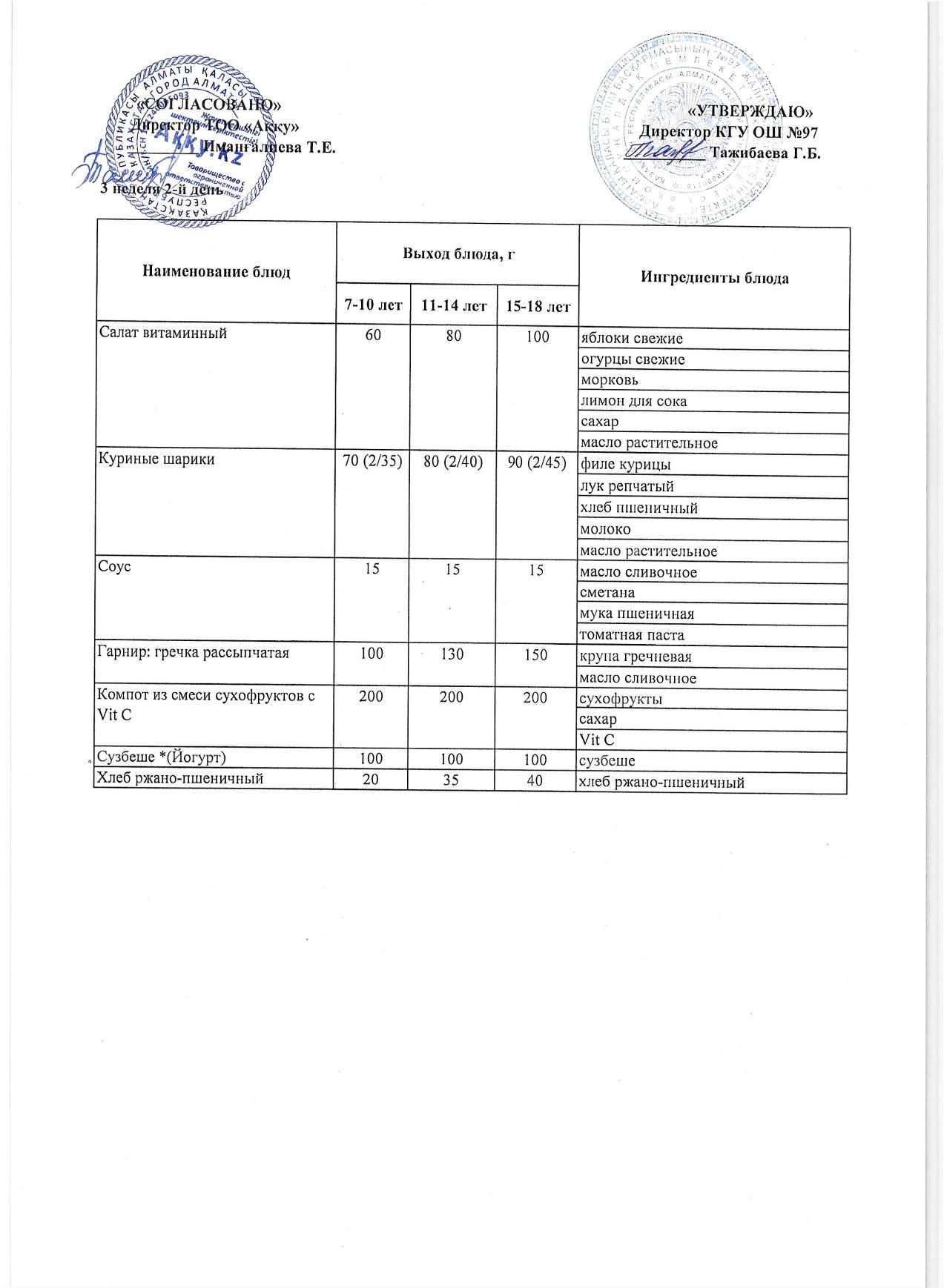 Меню 3 недели 2-й день