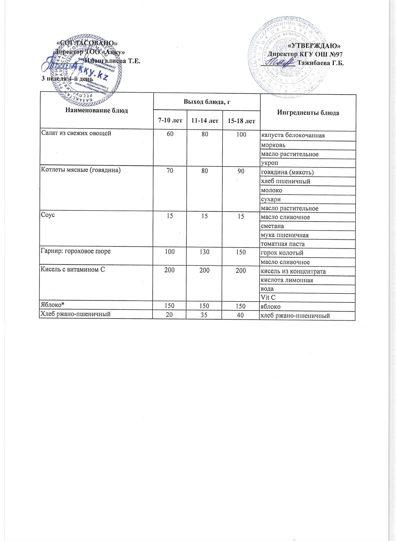 Меню 3 недели 4-й день