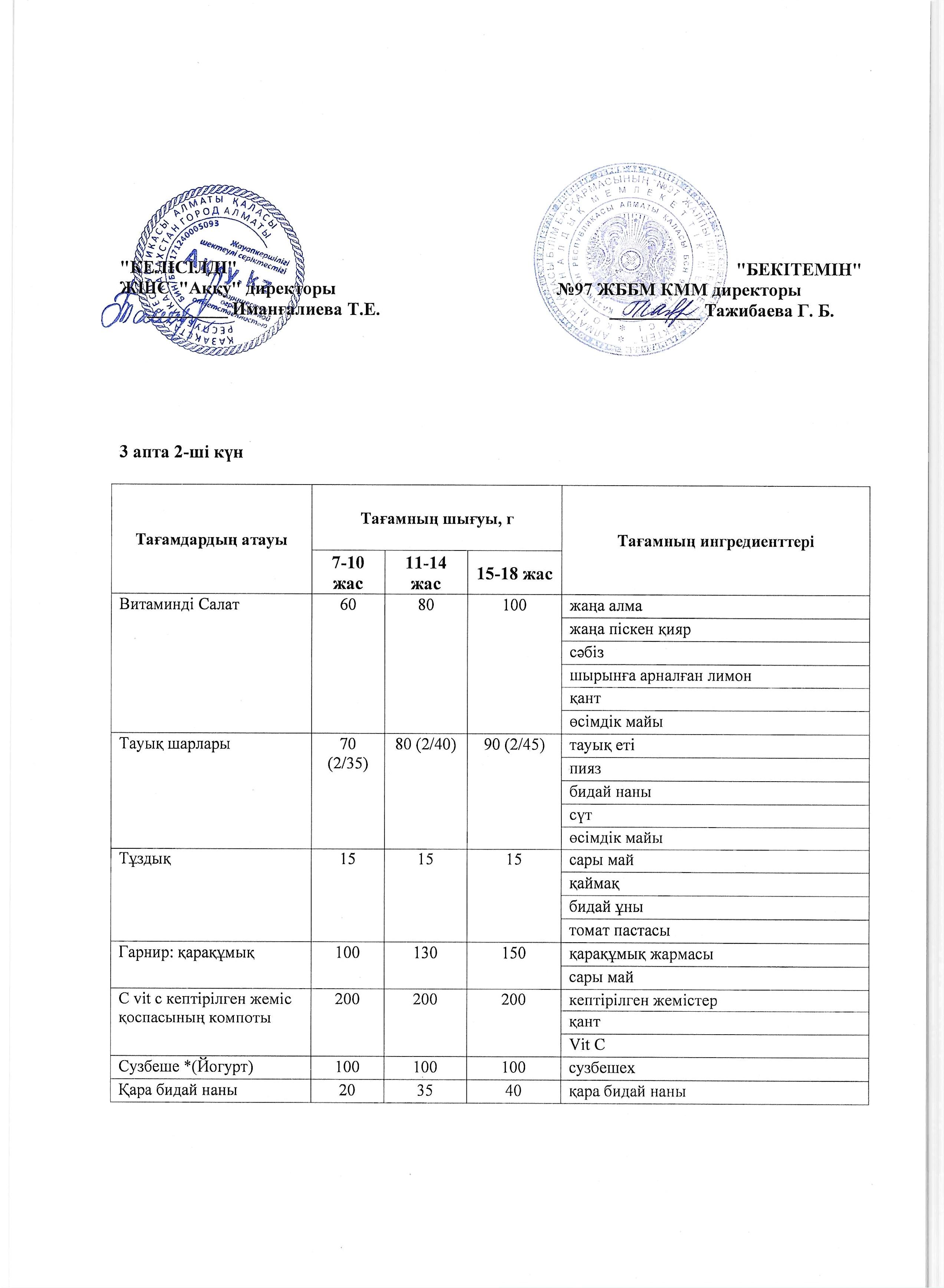 2 апта сейсенбі күнінің ас мәзірі