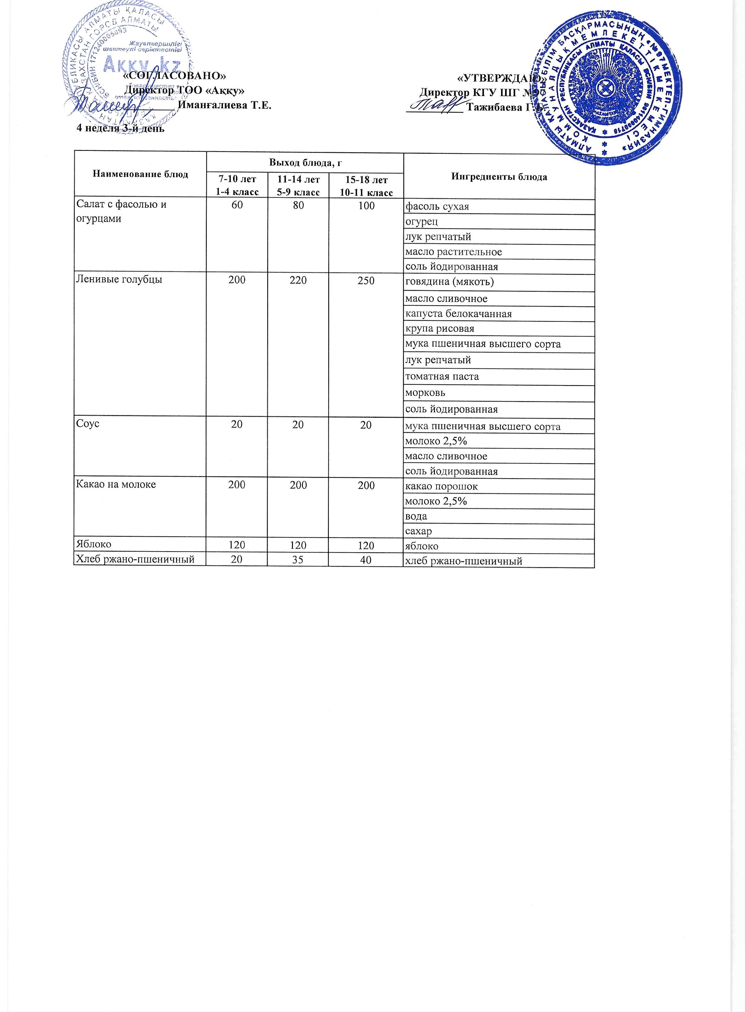 Меню 4 недели 3-й день