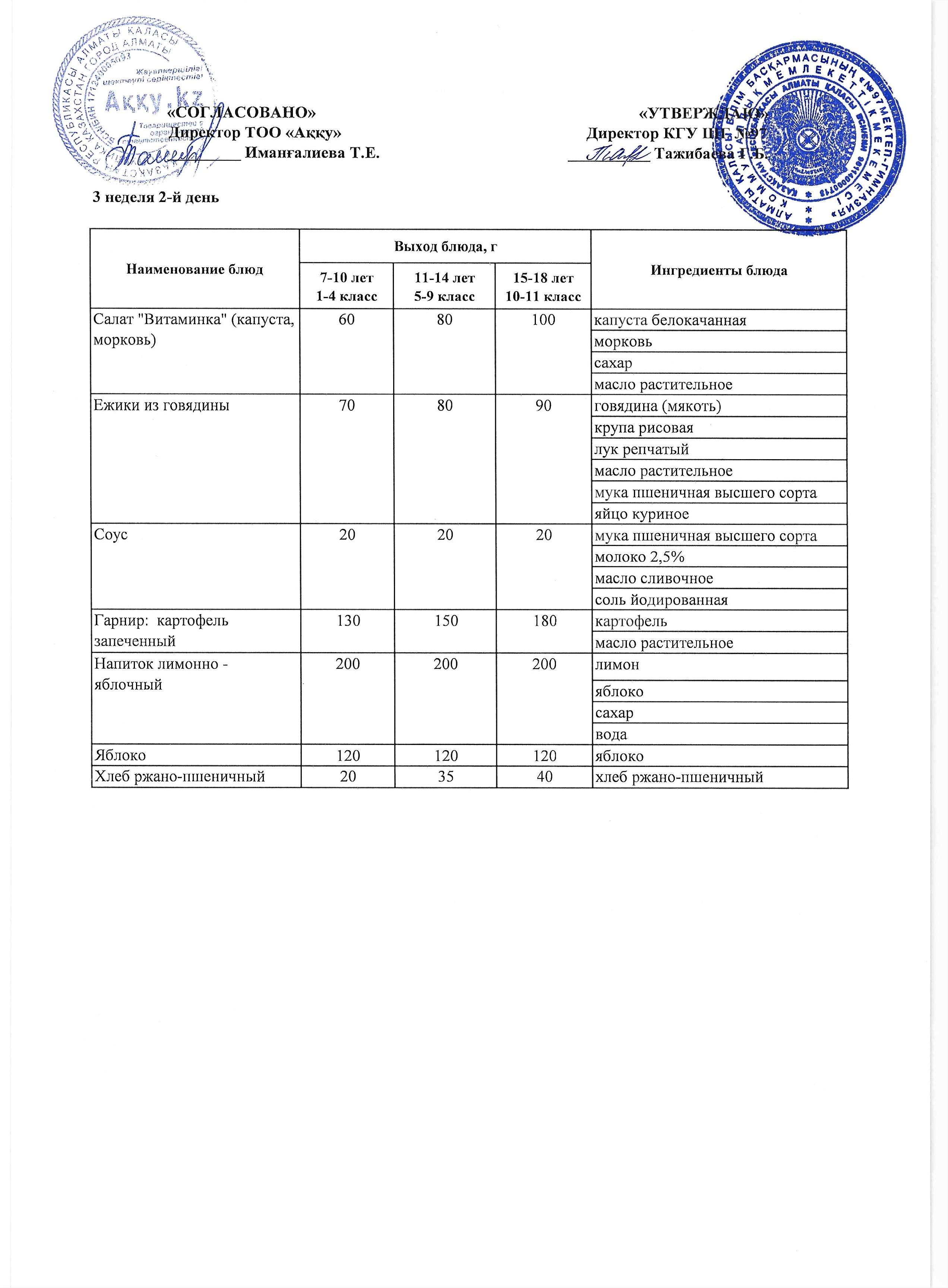 Меню 3 недели 2-й день