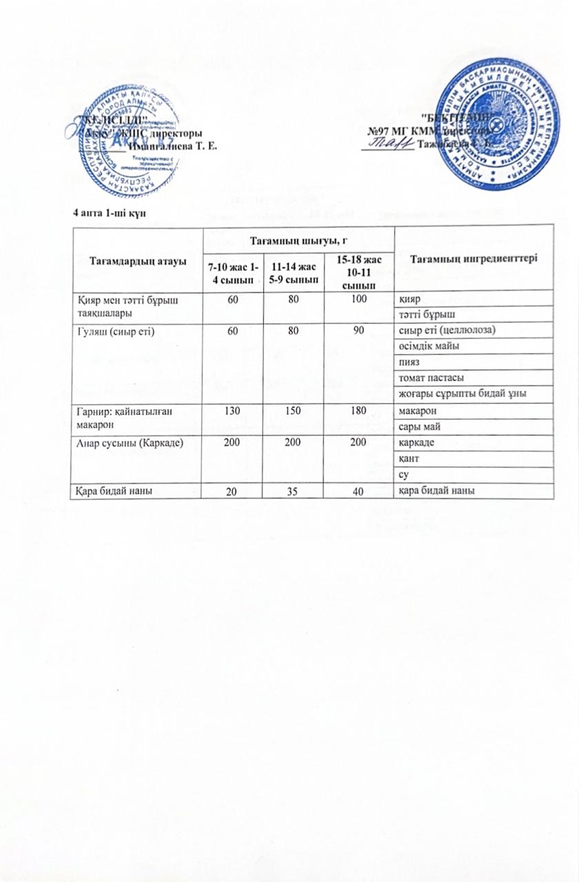 » 4 апта дүйсенбі күнінің ас мәзірі