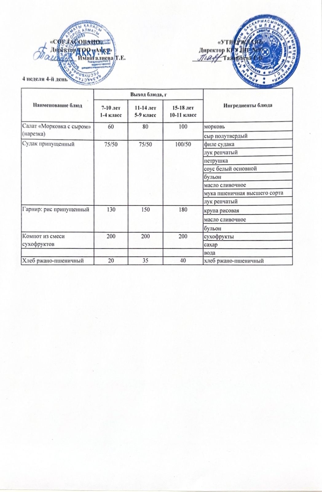 Меню 4 недели 4-й день