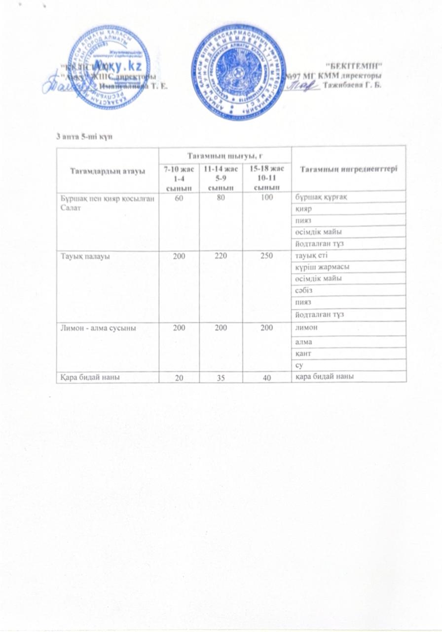 2 апта жұма күнінің ас мәзірі