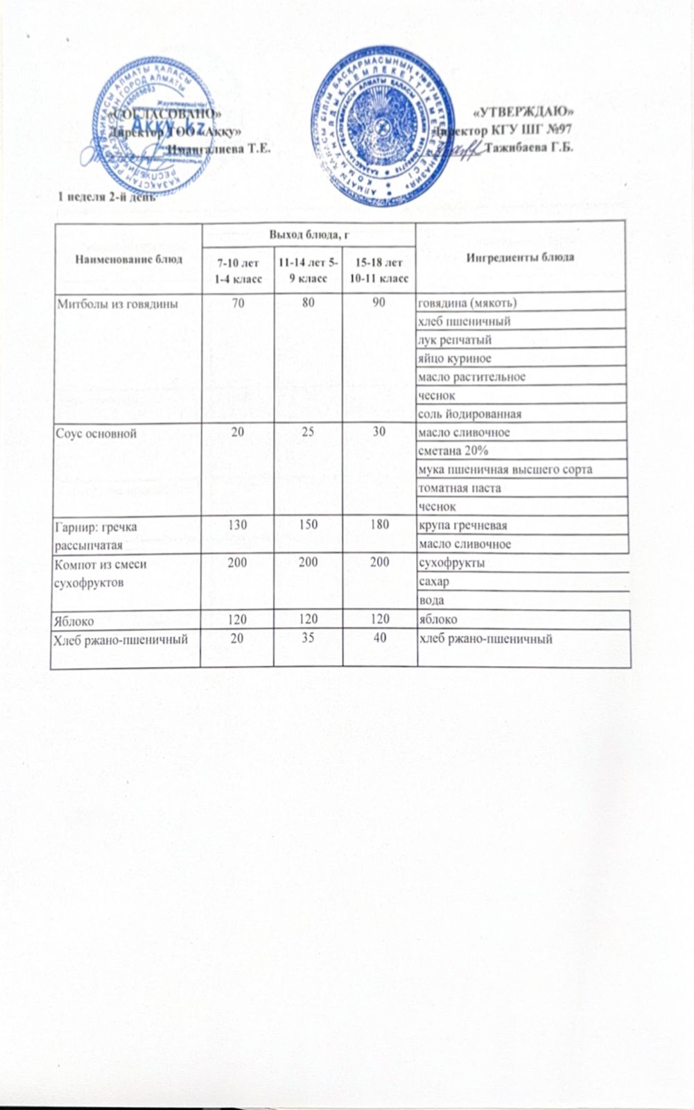 Меню 1 недели 2-й день