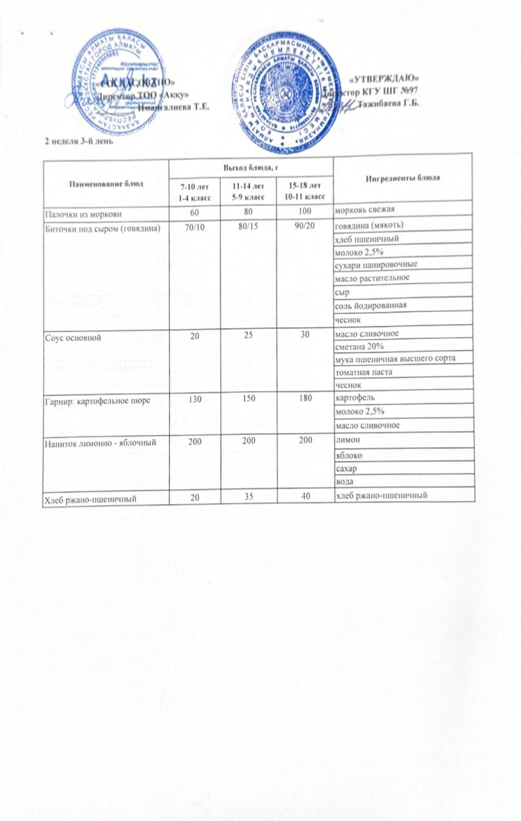 Меню 2 недели 3-й день