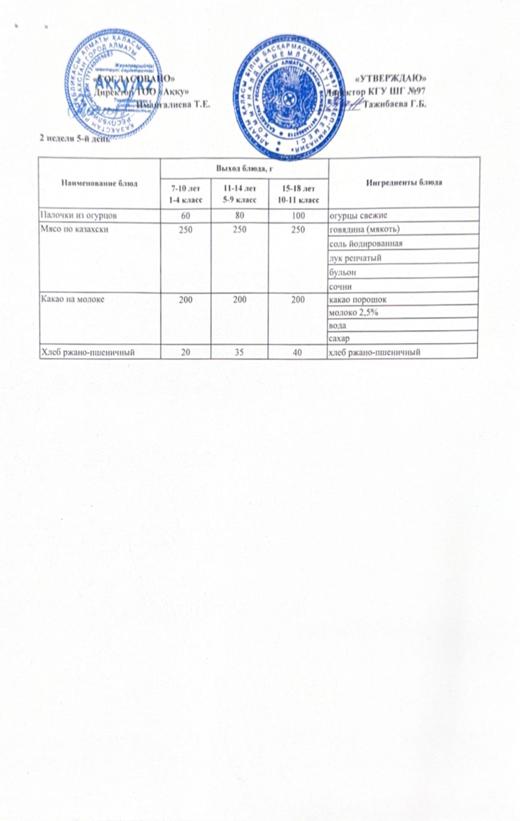 Меню 2 недели 5-й день